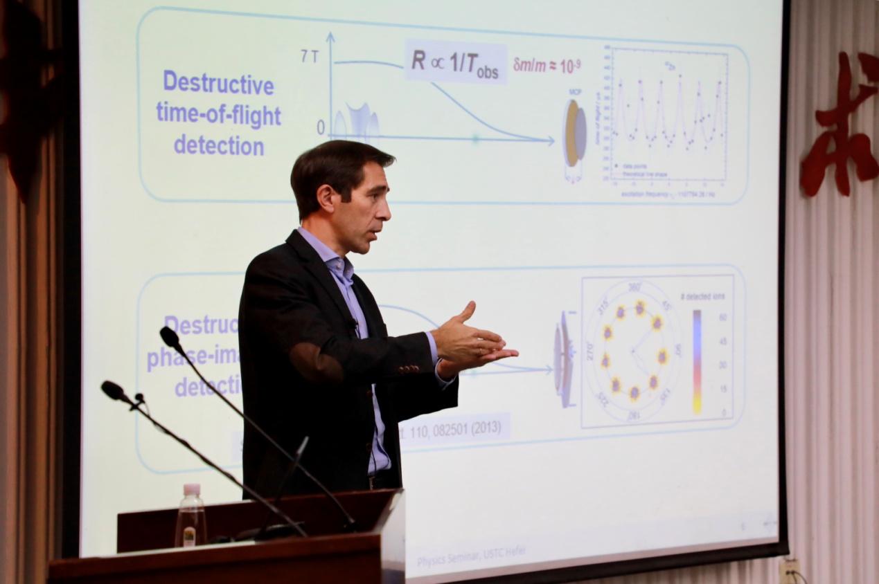 11月26日,应我校邀请,德国海德堡马普核物理研究所所长Klaus Blaum教授专访我校并做客“合肥大师论坛”,在理化大楼一楼科技展厅做了题为“Physics with ion traps towards the precision limit”的精彩学术报告。报告会由微尺度物质科学国家研究中心卢征天教授主持。报告会现场座无虚席,师生们认真聆听讲座。