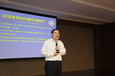 现场考察结束后,在东校区活动中心召开师生座谈会,会议由舒歌群主持。舒书记首先代表学校对白院长一行表示热烈欢迎,向白院长答应受聘为学校名誉校长表示诚挚感谢。包信和以《新时代 新担当 新作为 率先将中国科大建成世界一流大学》为题,就学校发展的总体态势、学校面临的机遇与挑战、学校发展的未来举措三个主题进行了汇报。包校长从招生培养、人才队伍、平台建设、科研成果等方面介绍了学校近期情况,中国科大在校党委领导下,学校上下团结一致,以立德树人为根本任务,积极参与国家“双一流”、中国科学院“率先行动”计划,深入实施“十三五”规划,全面深化综合改革,勇于创新、敢于超越、力争一流,各项工作均取得了可喜进展,但在理念、文化和体制机制等方面仍然存在制约发展的挑战,未来高质量发展的关键是进一步深化改革。包信和在汇报中特别指出,目前学校发展处在一个关键的机遇期,学校将以60周年校庆为契机,总结所系结合办学经验、促进科教融合,传承红专并进、科教报国传统,凸显科大精神,营造良好发展氛围,推动“双一流”建设,争取早日将学校建设成为中国特色、科大风格的世界一流大学。