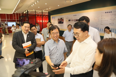 下午,白春礼调研中国科大科教创新展厅。在物质科学楼,白春礼观看了中国科大六十周年校庆宣传片。在科教创新展厅,白春礼参观了激光显示放映机展区、科大讯飞语音科技展台、量子信息科技创新成果展台等展出单元,听取研发人员对产品的介绍,了解下一步的发展规划和建设目标。白春礼对我校创新成果给予高度赞赏,他鼓励科研人员再接再厉,继续推进科研成果从实验室到产品的转化,以市场导向推动科技和经济的进一步发展。