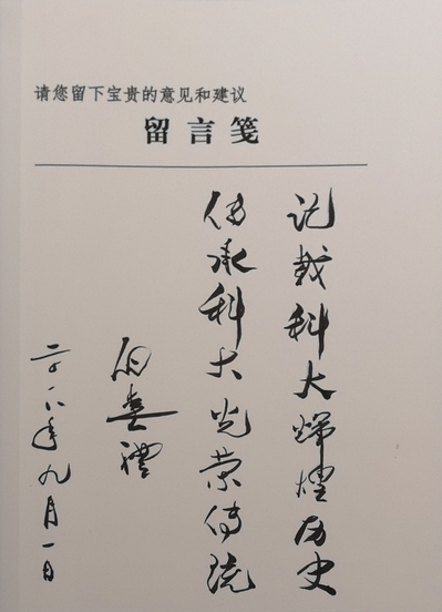在校史馆,白春礼在学生志愿者的介绍下参观了各个展馆。他表示,中国科大建校以来,一直受到中央领导的重视,习近平总书记三次考察科大,对科大寄予厚望。在校史馆参观结束时,白春礼在留言簿写下寄语:“记载科大辉煌历史,传承科大光荣传统”。