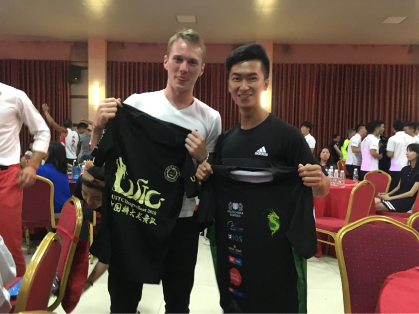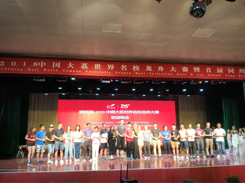 晚上进行的名校大联欢,来自不同国家、不同地区的参赛队伍带来了极具特色的节目表演,现象氛围一次又一次地被点燃。科大龙舟队的队员们则以一支舞蹈《cilicili》赢得阵阵喝彩。会间,科大龙舟队与同济大学、波兰格但斯克工业大学、武汉大学、南开大学、北京大学等高校互换队服、队旗等礼物,交流训练方法。至此,2018世界名校龙舟赛落下了帷幕。