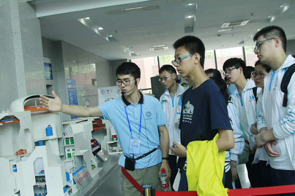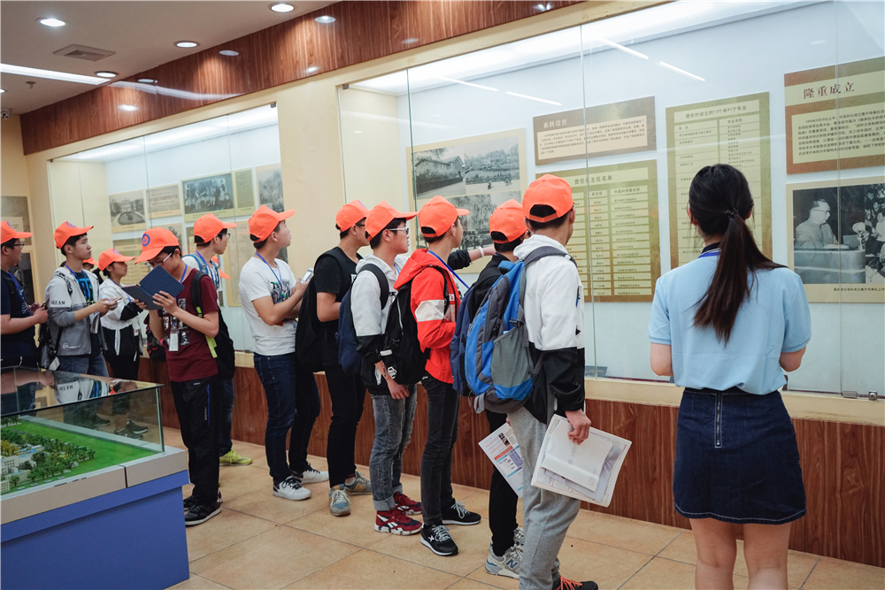在校史馆,来自太和三中的四十多名初中生在讲解员的带领下了解了中国科大建校历史、办学成就。初一的王同学表示,“这次参观是我自己报名前来的,从小我就对科大的校园充满向往,希望将来自己也能进入科大学习知识,报效祖国。”