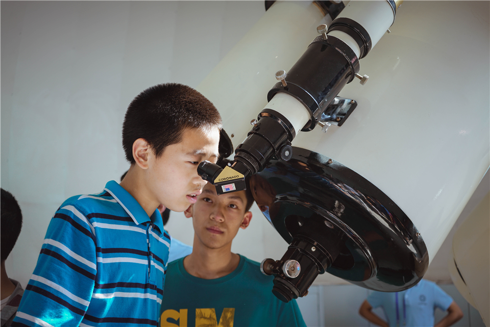 中国科学院星系宇宙学重点实验室每年都是最受欢迎的科普点之一。早上9点,理化大楼西侧的参观者就排起了长队,只为一睹天文望远镜的“风采”。在观测台里,少年班学院大一的李明正同学正在为前来参观的小朋友讲解天文知识和观测注意事项。他表示,科技活动周为中小学生提供了接触科技的机会,是一项很有意义的活动。此外,现场还安排了天文仪器展、天文科普知识展、天文科普影片展、天文知识竞赛等多种活动。