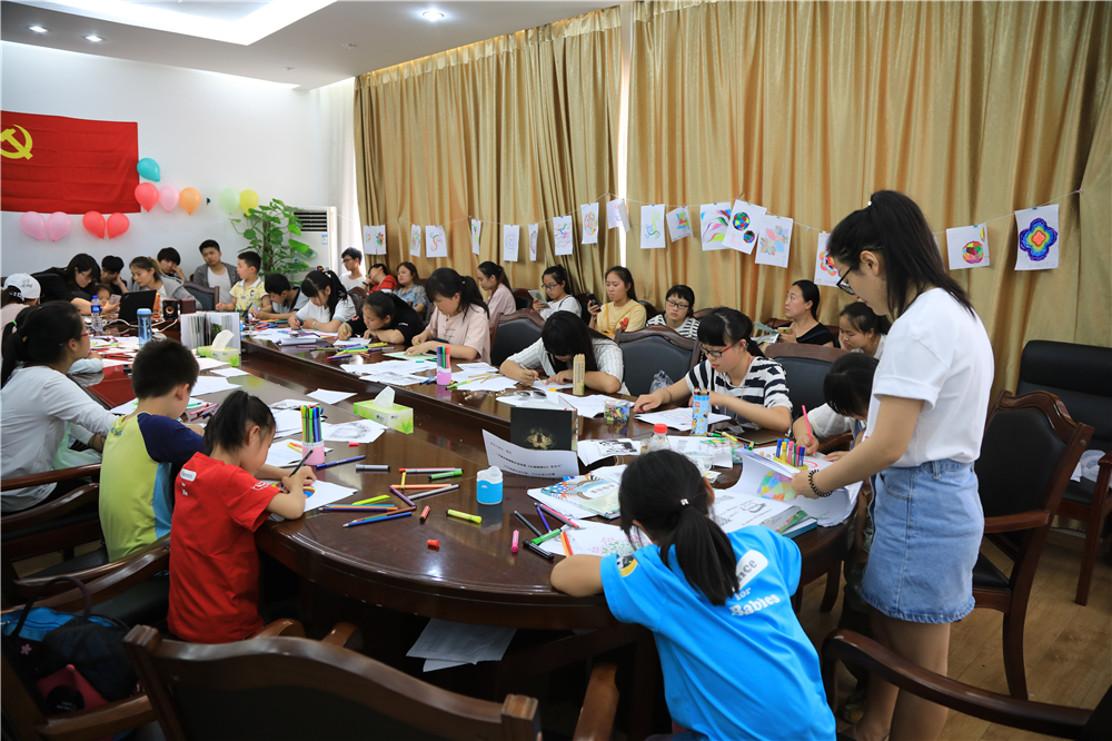 出版社科普点是今年新增的科普点之一,来自张庙小学高年级的二十多名同学围坐在二楼的会议桌前,用彩笔填涂一个个数学图案。这是出版社在科技活动周期间推出的《美丽数学》创意涂色比赛,现场志愿者介绍说,《美丽数学》是国内引进的第一本科学类涂色书,很好地将科学与艺术结合在一起,孩子们在涂色之余,还能形成初步的空间观念,感受图案之美。在出版社大厅内,还展出了上百种安徽珍稀蝴蝶标本和精美的蝴蝶生态照片。
