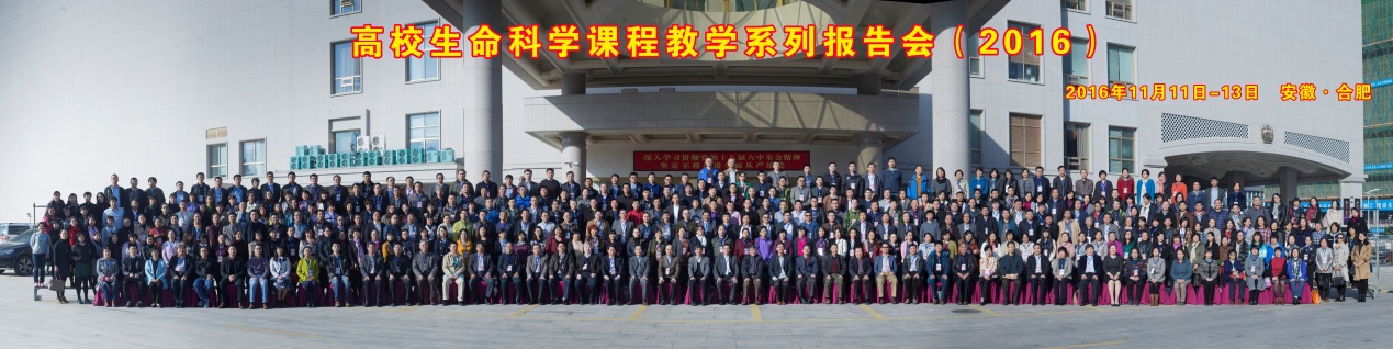 11月11-13日,由全国高等学校教学研究中心、教育部高等学校生物科学类专业教学指导委员会、教育部高等学校生物技术、生物工程类专业教学指导委员会、教育部高等学校大学生物学课程教学指导委员会和高等教育出版社共同主办,中国科学技术大学作为执行主席单位承办的“高校生命科学课程教学系列报告会(2016)”在合肥举行。本次会议吸引了来自全国130余所高校的近500位生命科学教学一线的专家教师参会。