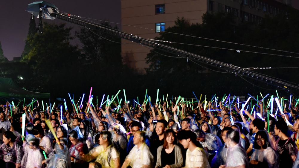 虽然下着小雨,但并没有阻挡晚会的正常进行。本次晚会的舞台分为主席台上的主舞台与操场上的副舞台,同时用地毯延伸出一个T台。15日一早,工作人员和演员便已就位。下午六点半,观众们也陆续到场,操场上簇拥了4000多人,大多数是节日留校的本校师生们,也有不少外校的同学结伴前来,大家都等待着科大第一次户外晚会的开幕。
