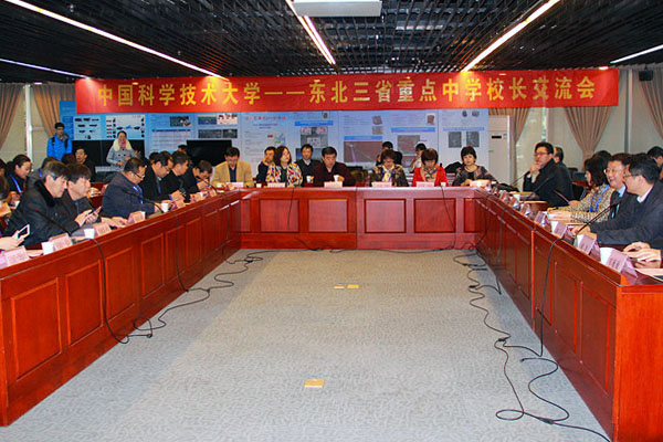 12月12日上午,来自东北三省重点中学的校长代表齐聚中国科大,参加我校举办的2015年东北三省重点中学校长交流会,共同探讨人才培养、招生政策、教育衔接等话题。中国科大党委副书记蒋一出席会议并致辞,招生就业处处长傅尧作会议报告,合肥一中陈栋校长应邀作为嘉宾出席并作主题发言,招生就业处副处长韦巍巍主持会议。