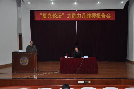 4月7日下午,“复兴论坛”系列讲座之陈力丹教授报告会在科大东区水上报告厅举行。中国人民大学新闻学院责任教授、博士生导师陈力丹教授应邀为我校师生作题为《习近平的宣传观和新闻观》的精彩报告。人文学院分党委书记潘正祥主持本次报告会。