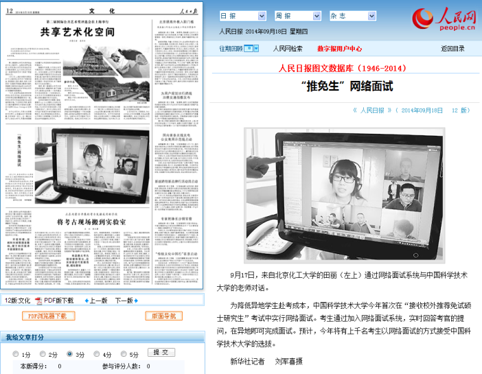 面对新挑战,今年优秀推免生招录工作之所以能顺利进行,得益于学校各单位的群策群力、密切配合。在校领导的总体部署下,在以执行院长为核心的各学院推免工作领导小组的协同组织下,研究生院精心谋划,多渠道、立体化开展推免生等优质生源的招收工作:5-8月份,加大了优秀大学生夏令营的宣传和支持力度,10个夏令营共遴选1400名优秀大学生参加,发掘了一批具有较好科研潜质的优秀学子;拓宽了招生宣传手段,丰富新媒体宣传渠道、壮大研招宣传队伍,达到了研招宣传多点开花的效果;推出了网络面试系统,方便了考生,提高了效率,尤其契合了新的招录规则,为争取优秀生源赢得了先机,据统计,今年申请提前面试的考生已达3600余人。为圆满完成上述工作,研究生院、各学院研究生部牺牲了暑期、国庆长假、周末、晚上等休息时间,促进了2015年推免生招录工作的顺利进展,目前各院系接收工作已进入收尾阶段。