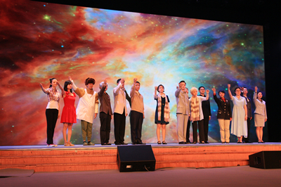 今年,在中国科大春季学期伊始,剧组再次面向全校招募学生演员,同学们积极响应,参与踊跃,特别是有很多2013级新生加入了剧组。剧组力量得到新的补充和完善之后,立即开始了卓有成效的排练。自2012年以来,该剧在舞台布景上进行了多次调整,在剧情内容、人物台词、音乐旋律上历经了多次锤炼。如今展现在观众面前的《爱在天际》,剧情的推进更加紧凑流畅,多媒体舞台效果更加形象逼真,音乐旋律更加优美动人,人物台词更加富于时代气息,更能引起年轻人的共鸣。