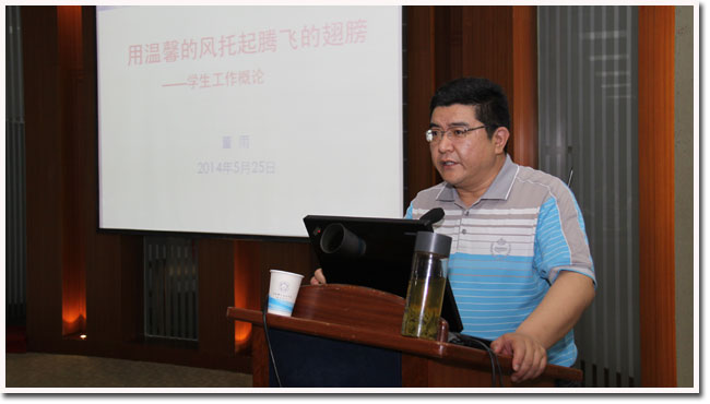 开学典礼之后,董雨以“用温馨的风托起腾飞的翅膀”为题,作了专题讲解。他从全校学生工作体系、学生工作指导思想、学生工作着力点、学生工作部(处)职能等方面,对学生工作的内涵和本质进行了阐释,帮助辅导员班主任从宏观的思想高度到微观的方式方法,全方位、多角度地认识和了解学生管理工作。