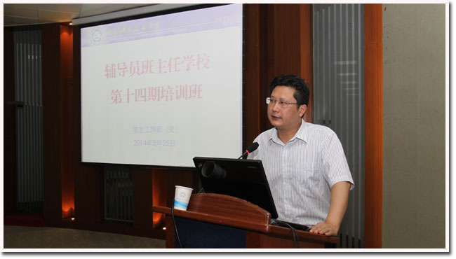 本期培训班工作分为两次集中学习和网络学习三个部分。第一次集中学习主要就学生工作总体概述和学生突发事件的应对处理等专题进行培训。目前,第一次集中培训已经完成,随后,新生辅导员班主任将在6月中旬至7月底的这一段时间内通过网络课堂的形式,重点学习学生管理实务、团学工作、一卡通事务、网络新媒体工作等专题并参加网络考试。第二次集中培训将安排在新生入学前,着重对迎新、新生入学教育、军训和心理教育等工作加强培训指导和工作交流。