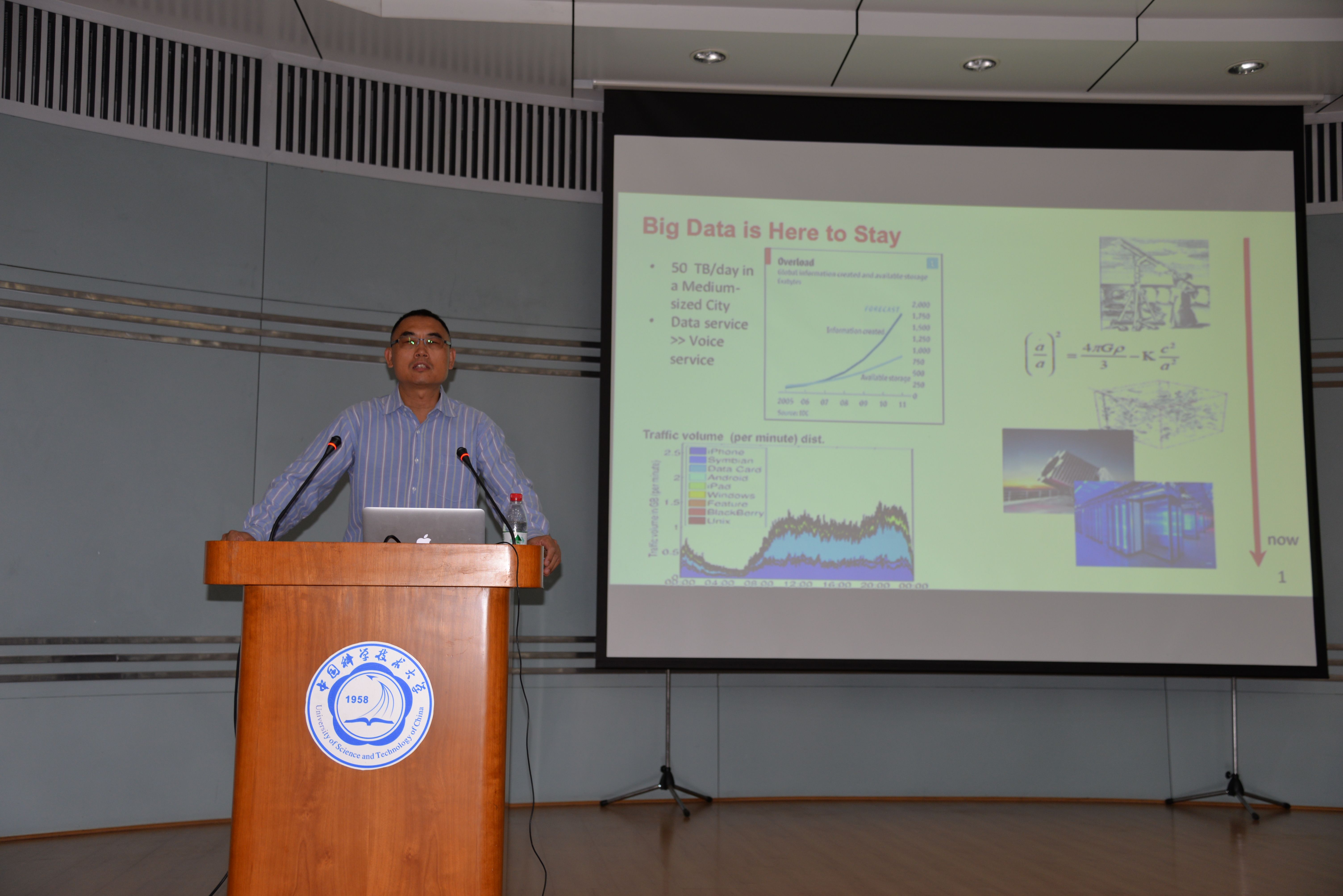 28号下午,杨强教授报告会在西区师生活动中心学术报告厅举行。报告中,他深入浅出地介绍了大数据时代的社会需求,以及华为诺亚方舟实验室的一系列科研课题、进展和成果。他还介绍了华为诺亚方舟实验室正在研发的一种微博软机器人“小诺”,它可以自动提取前沿科技报道,模仿网络意见领袖发布微博,并且对其他微博做简单评论。杨强教授的报告内容丰富精彩、语言幽默风趣,引起了在座师生的极大兴趣。