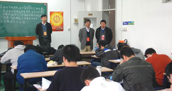 为确保考试工作顺利进行,学校成立了考务工作领导小组,副校长陈初升担任组长,教务处处长蒋一,副处长李蓓、汤家骏,人文学院副院长孙蓝担任副组长。考试当天,安徽省教育厅高教处处长储常连在副校长陈初升和校纪委、教务处等部门的陪同下对各考场进行了巡查。