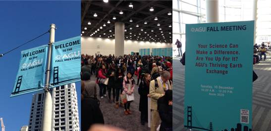 来自世界各地的科学家在AGU秋季年会上以口头和海报报告的形式进行学术交流,并且同行间可以利用这次会议进行面对面的交流。我校有多个专业的数十位学生、学者参加此次AGU秋季年会。会上,大家和国内外的同行深入交流了学术成果,从学术报告和会谈中获得灵感。这次AGU秋季年会除了地球和空间科学学院的科学家,还有首次参加AGU年会的化学与材料科学学院胡水明教授,他在AGU报告了运用Atom Trap Trace Analysis确定水中的85Kr同位素的丰度,以此手段确定地下水或者冰的年代,其结果发表在Nature的Scientific Report上。这体现了地球科学是学科高度交叉和融合的科学。