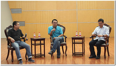 四十分钟的“可穿戴式产业的未来”圆桌论坛,三位校友畅谈了交互式设备的前景以及目前已经发布的多款可穿戴设备的特点,并就同学们关注的问题进行了交流。三位校友机智幽默的谈吐引得现场观众阵阵掌声和欢笑。