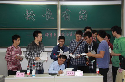 最后,侯建国校长还向同学们赠送了学校2012年年报《聚力﹒共创﹒新篇章》,并为同学们签字留念。