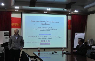 3月14-15日,美国佛罗里达大学Jose C. Principe 教授应邀来我校作为期2天的学术访问,期间为我校师生做了2场学术报告,题目分别为“Information Theoretic Signal Processing”和“Somatosensory Brain Machine Interfaces”。Principe教授是国际生物医学信号处理领域的知名学者,他的报告吸引了许多信息学院和计算机学院的老师和学生参加,另有部分老师和学生来自浙江大学和南京信息工程大学。