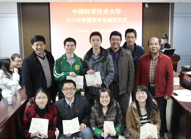 地学攀登奖学金由中国科学院地质与地球物理研究于2006年设立,2012年度赵健、庞智桐、杨宏、何小庆和刘昱辰等五位本科生获该奖;赵九章奖学金设立于2006年,由吴京生先生、中国科学院空间科学与应用中心、中国科学院大气物理研究所联合设立,2012年李秋阳、王岑、杨旭、褚旸晰、廖一帆、陈希、王文忠、胡敬雅、金木青、葛双雨、沈智超等十位本科生分获该奖;劳雷奖学金由劳雷工业有限公司设立于2011年,2012年秦蕾、韩韬、甄承、王娜、孙辉等六位本科生和包丰、王威、王巍、何龙等四位研究生分获劳雷奖学金;刘光鼎地球物理奖学金是刘光鼎地球物理科学基金会于2007年设立的,2012年陆洲、秦岩和易津晶等三位同学获该项奖励;817校友奖助学金由地球和空间科学学院1981级校友在2006年发起设立,2012年度的817校友奖助学金由张庆焕、张学习、刘进军、周楚亮、朱豪等五位同学分获。