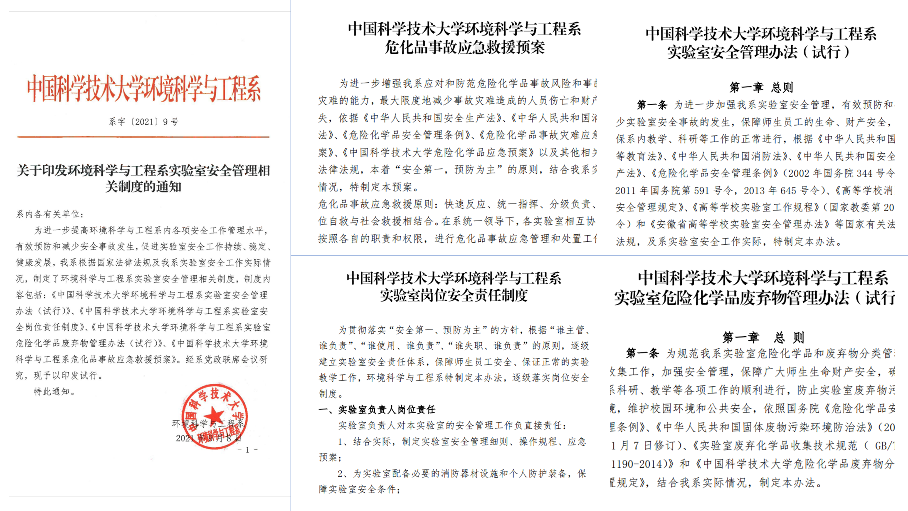 为有效管控风险,确保师生拥有安全的工作环境,环境科学与工程系党总支积极行动,将落实安全工作保障条件与“我为师生办实事”结合起来。自今年7月以来,党总支组织制定并发布了多项实验室安全管理规章制度,数次开展实验室安全检查专项工作,积极自查自纠安全问题,保障师生工作环境。