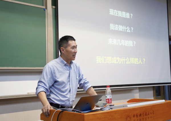 随后,李向阳向全班同学提出了以下几个深刻的问题:“现在我是谁?”,“我该做什么?”以及“未来几年的我想成为什么样的人?”,并分别就“国之栋梁”“学术大咖”“商业精英”三条发展道路向同学们介绍了相关行业的现况与前景,并结合自身经历讲述了自己对上述三种发展规划的看法。