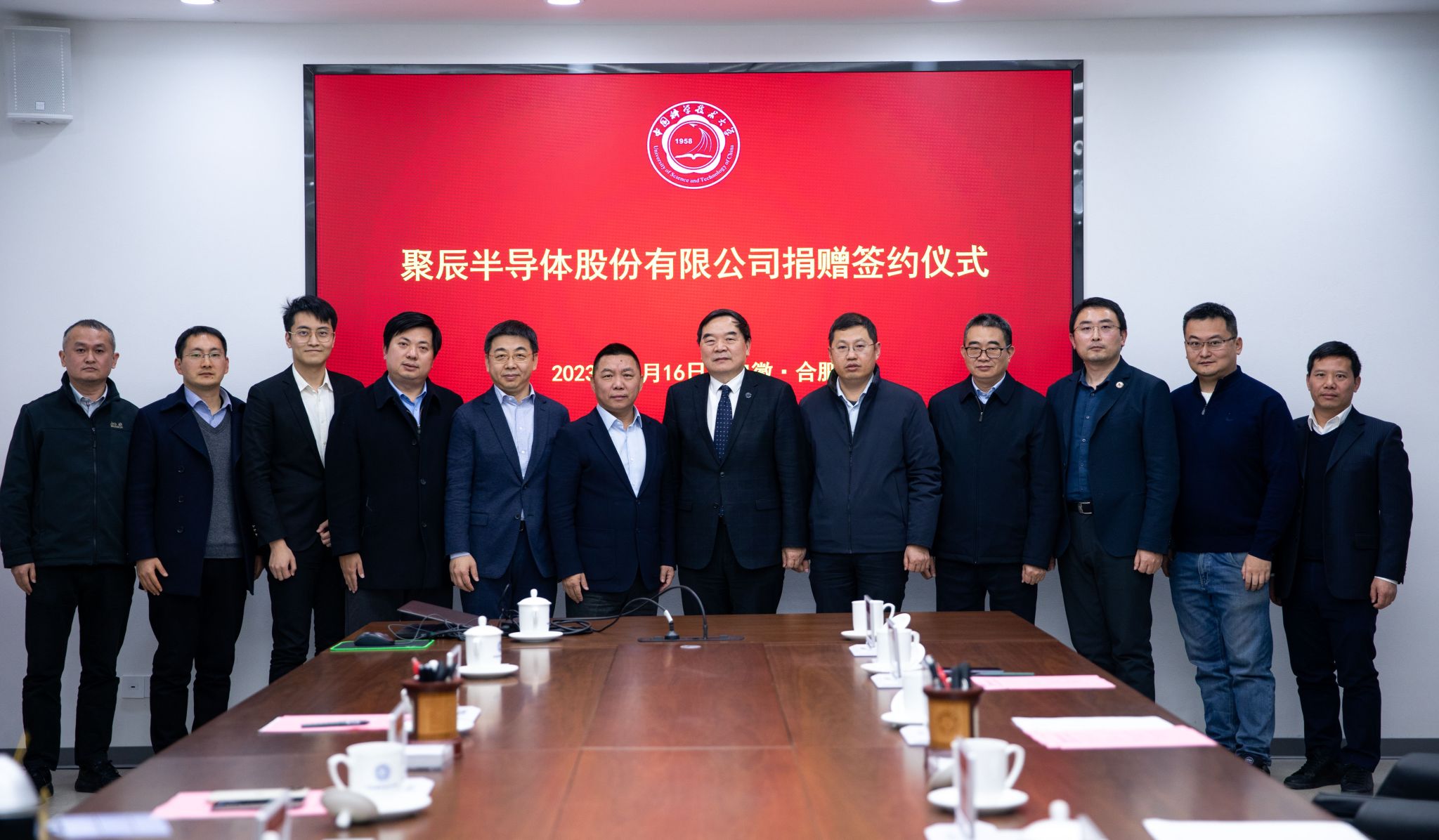12月16日,聚辰半导体股份有限公司(以下简称“聚辰半导体”)与中国科学技术大学捐赠签约仪式在学校东区218楼举行。聚辰半导体董事长陈作涛,董事、总裁张建臣,湖北珞珈梧桐创业投资有限公司总经理林庚,校长包信和,党委常委、副校长傅尧,党委副书记、党委宣传部部长邓建松出席仪式和参加会见。校党政办公室、对外联络与基金事务处、团委、国家示范性微电子学院、教育基金会等单位负责同志参加签约仪式。仪式由对外联络与基金事务处副处长赵林主持。