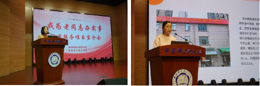 为深入践行“我为群众办实事”实践活动,努力解决老同志急难愁盼的各项问题,4月29日下午,离退休干部党委、离退休干部工作处联合太湖新村社区在东区水上报告厅成功举办助老服务项目宣介会。太湖新村社区党总支书记赵霞,副书记王珊珊,芜湖路街道机关党委书记沈娟,各离退休支部委员、行政片骨干及感兴趣的离退休教职工和家属、离退休干部工作处全体工作人员参与活动。活动由离退休干部党委书记、离退休干部工作处处长万洪英主持。