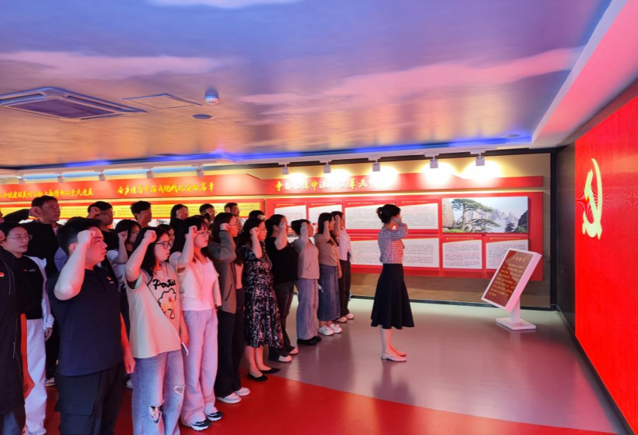 参观结束后,学院党委副书记蒋文娟带领全体党员重温入党誓词,铿锵有力的誓言彰显出严守党纪的庄严承诺,誓要将纪律内化于心、外化于行,做到心有所畏、言有所戒、行有所止。