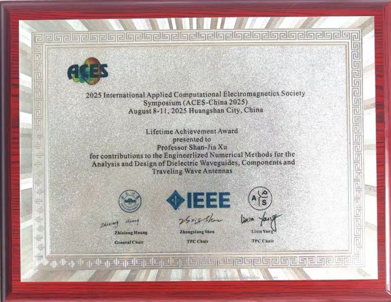 在2025年8月召开的国际应用计算电磁学大会(2025 International Applied Computational Electromagnetics Society Symposium)上,我校退休教师徐善驾教授荣获终身成就奖(Lifetime Achievement Award),以表彰他在计算电磁学领域和介质导波结构及其应用方面所取得的杰出成就。徐善驾教授获此殊荣是对他践行“科教报国,追求卓越”精神的最美礼赞。