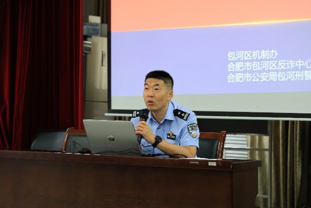 为切实守护离退休教职工的“银龄”钱包,提升反诈防骗意识,9月24日上午,第15期“瀚海银龄大讲堂”之“关爱离退休教职工,谨防电信诈骗”主题讲座,在东区离退休干部活动中心二楼多功能厅顺利举办。本次讲座由校保卫与校园管理处、财务处、离退休干部工作处联合合肥市公安局包河分局责任区刑警三队(包河区反诈分中心)、中国银行合肥蜀山支行共同开展。校财务处处长姚子龙、保卫与校园管理处副处长徐耀龙出席活动,讲座由离退休干部工作处处长万洪英主持。