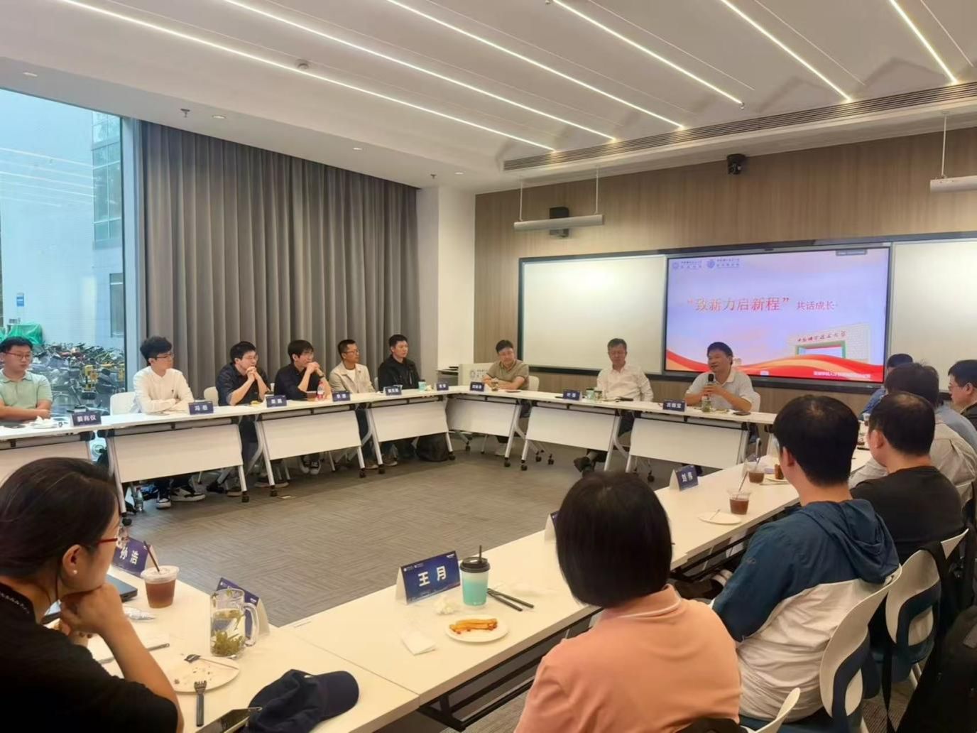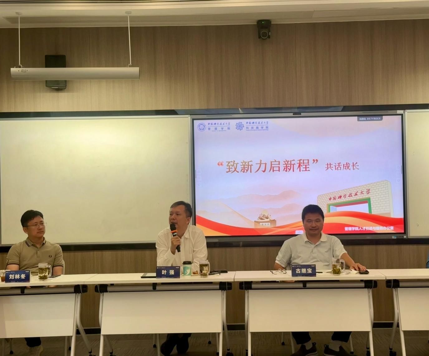 在建校67周年暨“校风传承月”之际,为加强学院师德师风建设,助力青年教师更好更快地融入科大、明晰职业路径,9月24日,管理学院人才引进与服务办公室在管理科研楼第二案例室举办“致新力,启新程”——共话成长座谈会。学院执行院长叶强、党委书记古继宝出席座谈会,人才引进与服务办公室主任刘林冬、20余名新进教师参加活动,此次活动由人才引进与服务办公室副主任张博主持。