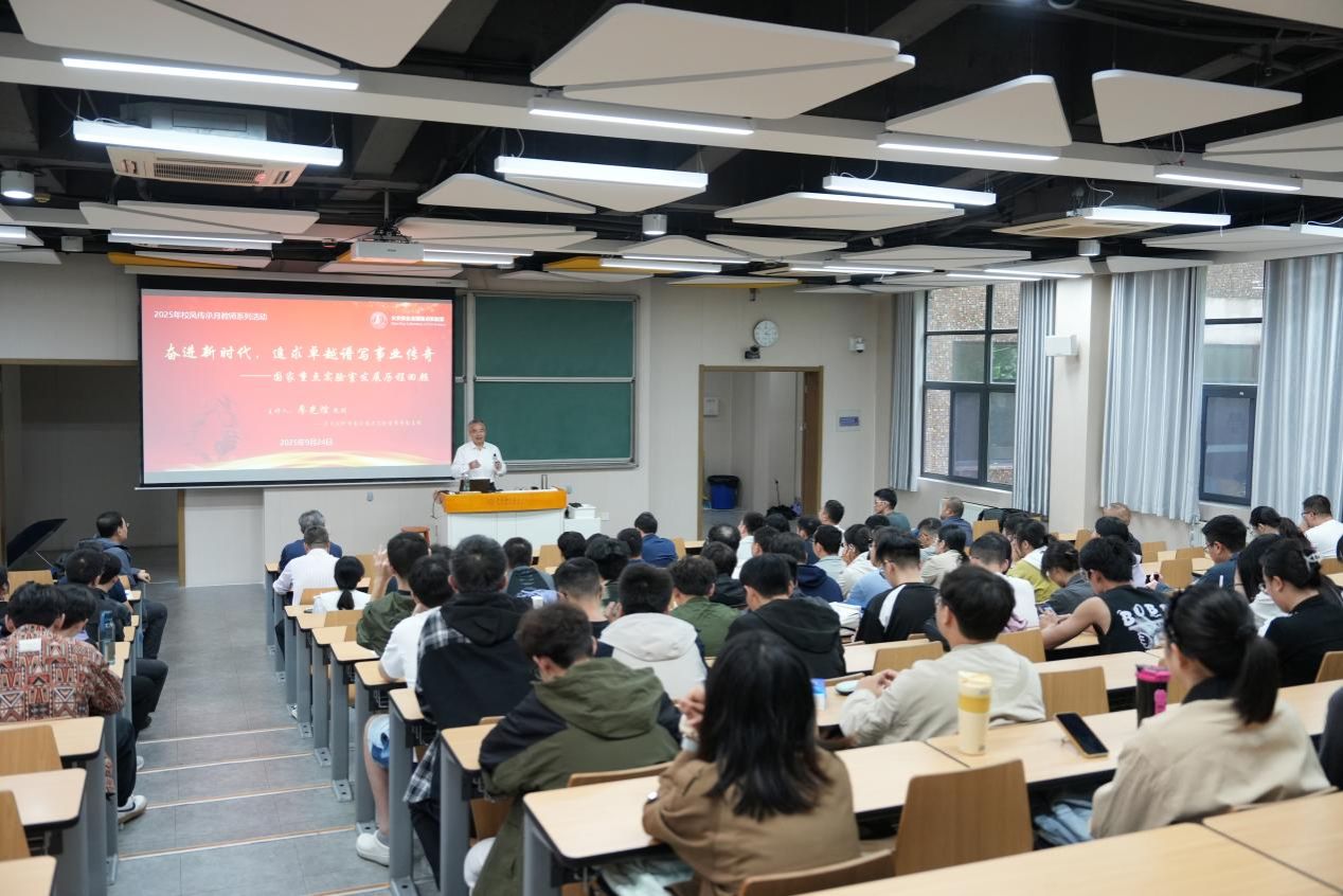 为弘扬抗大精神、“两弹一星”精神、科学家精神、教育家精神,传承“勤奋学习、红专并进”的优良校风,9月24日下午,火灾安全全国重点实验室举办“校风传承月”活动,邀请实验室原常务副主任廖光煊教授在西区3C103教室作题为《奋进新时代,追求卓越谱写事业传奇——国家重点实验室发展历程回顾》的师德师风专题教育报告会。实验室党委书记、副主任朱霁平主持报告会,实验室青年理论学习小组成员、教工第一与第二党支部党员、近两年入职的青年教师和2025级新生等近200人参加报告会。