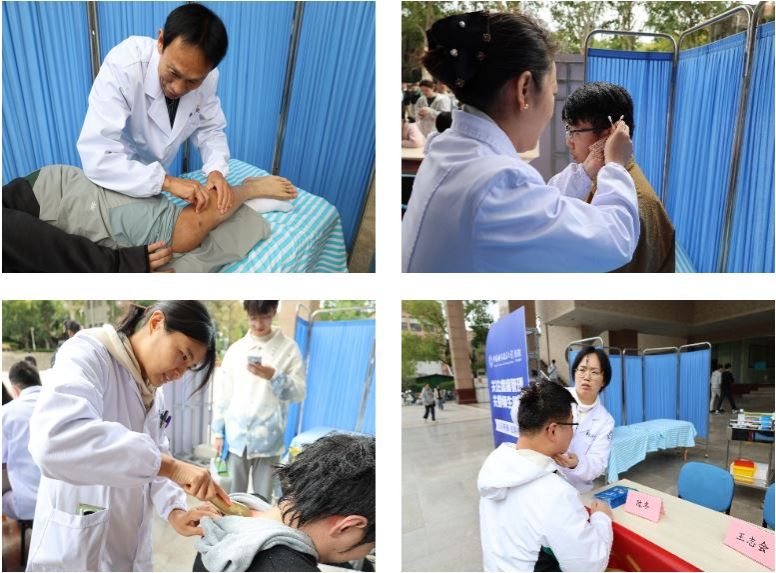 在体验区,疼痛专家团队通过现场演示与专业讲解,生动展示了浮针、耳穴、刮痧等中医特色疗法;现场师生踊跃参与亲身体验,取得了明显的治疗效果,使师生切实感受到其在疼痛管理方面具有"简、便、效、廉"的独特优势;体验结束后,师生们纷纷主动咨询活动的后续治疗安排,充分体现出对中医特色疗法的浓厚兴趣与高度认可。