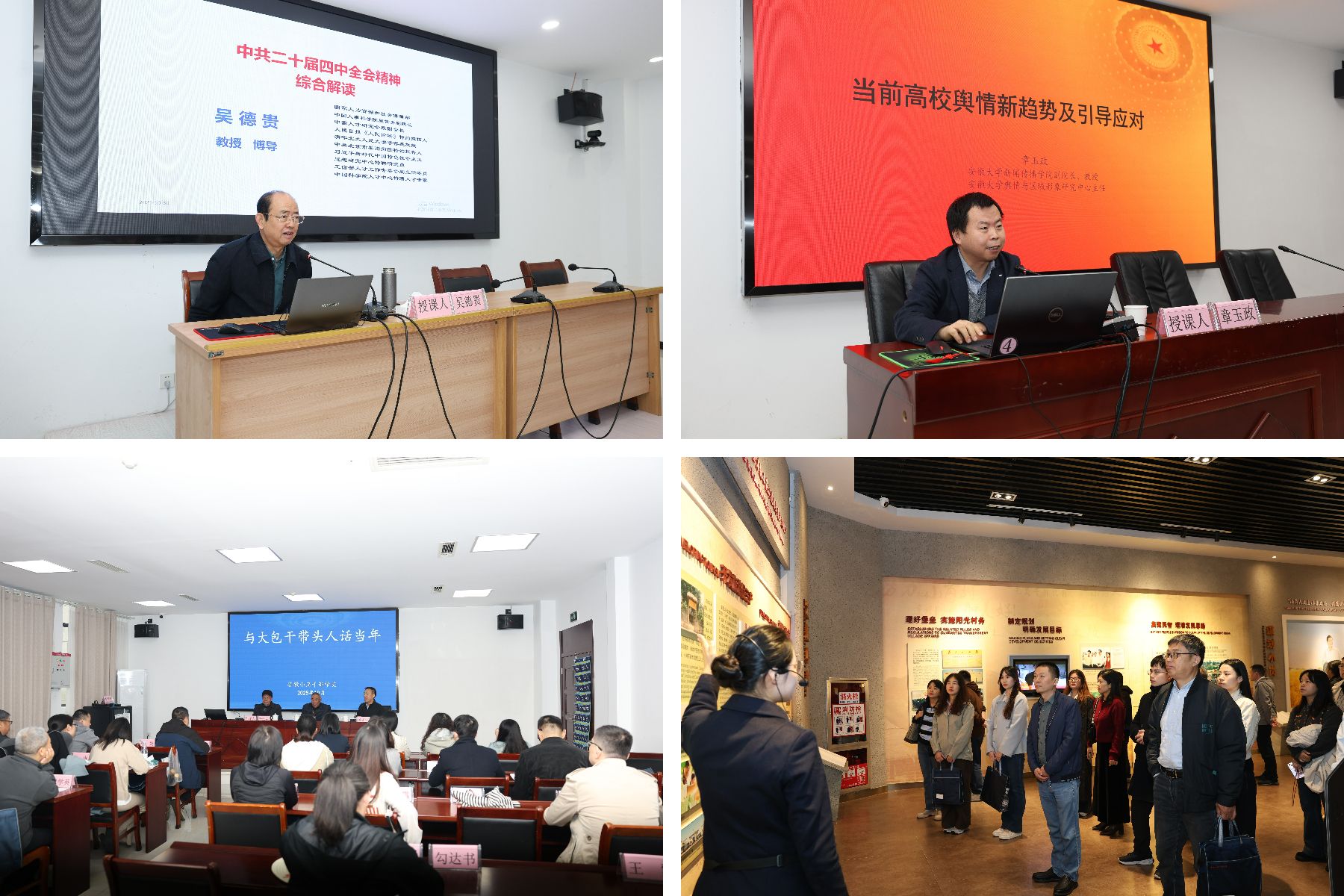 马克思主义学院副院长、教授魏荣作《深刻把握<习近平谈治国理政>第五卷要义暨学习贯彻党的二十届四中全会精神》专题报告,从《习近平谈治国理政》第一卷至第五卷的贯通学习意义、《习近平谈治国理政》第五卷的核心要义、理论武装的实践转化、学习贯彻党的二十届四中全会精神等维度,深入阐释了习近平新时代中国特色社会主义思想的精神实质和丰富内涵。