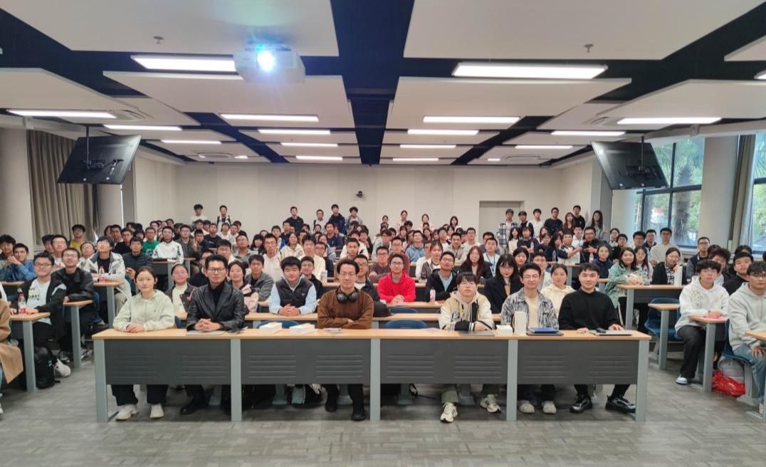 互动环节中,新生们围绕 “如何平衡专业课学习与竞赛准备”“科研入门选择什么方向更易上手”“推免与出国深造的时间节点如何规划” 等实际问题积极提问,四位学长结合自身经历逐一解答,现场交流氛围热烈。活动最后,全体参会人员齐唱校歌《永恒的东风》,分享会圆满结束。