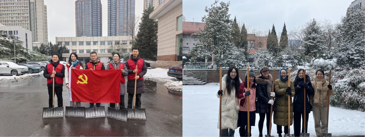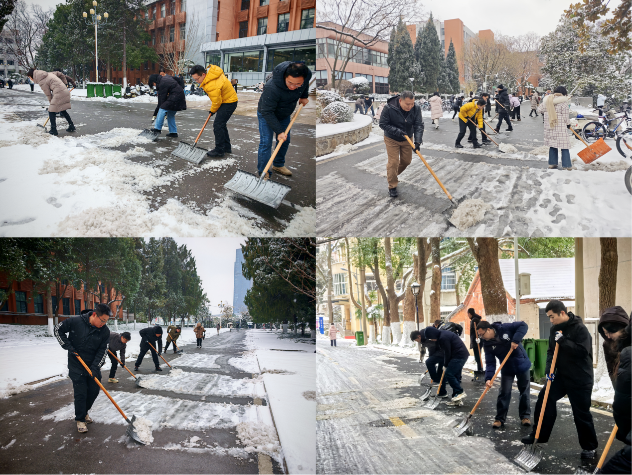 近日,合肥迎来持续低温雨雪天气。1月20日上午,为保障校园安全运行和师生正常出行,机关党委迅速动员、组织机关教职工开展扫雪除冰行动。机关各支部党员、机关团委青年教职工积极响应、协力行动,在冰雪中以实际行动践行服务师生的初心,为冬日校园增添了融融暖意。
