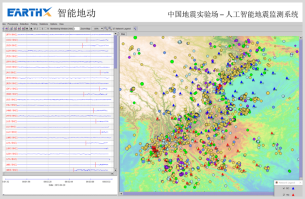 中国科大交叉合作团队与中国地震局合作推出的人工智能地震实时监测系统。