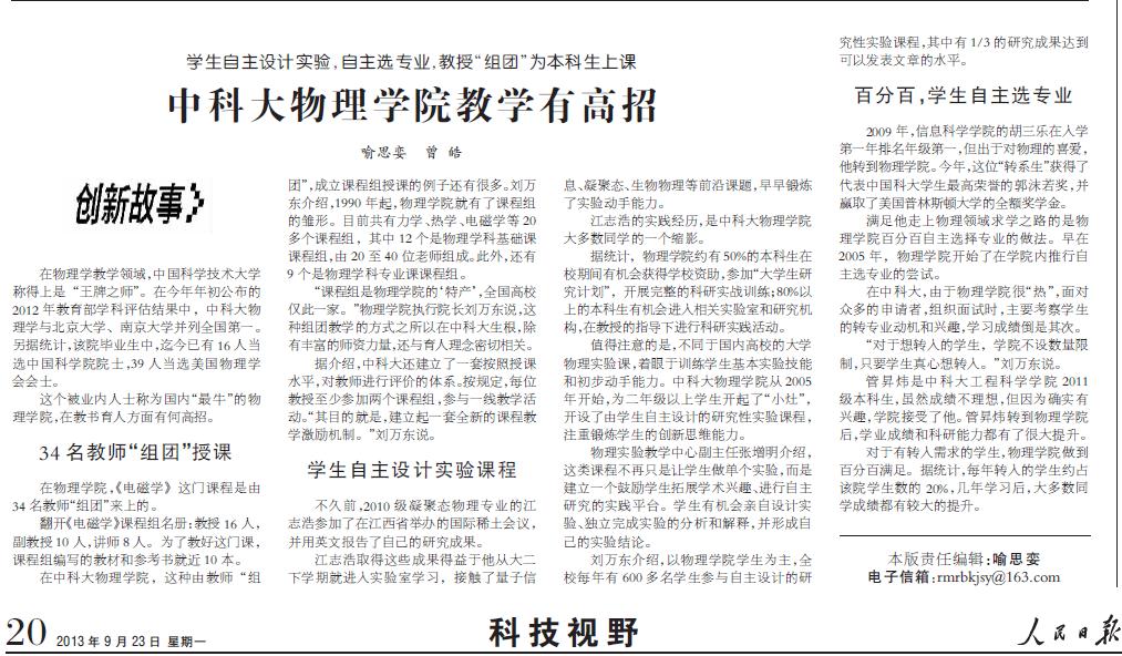 [人民日报]中科大物理学院教学有高招(创新故事)