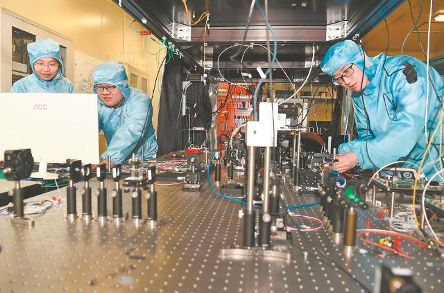 ▶ 2月7日,在中国科学技术大学中国科学院量子信息重点实验室,科研人员进行量子密钥分发实验。春节假期,该实验室科研攻关不停歇,为量子密钥分发系统实现更高的效率和安全性而努力。 本报记者 徐旻昊 摄