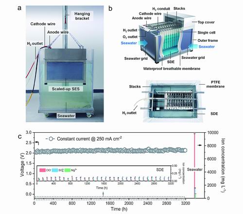 复杂的海水成分导致海水制氢面临诸多难题与挑战。11月30日,中国工程院院士谢和平与他指导的深圳大学、四川大学博士生团队在《自然》上发表论文,以物理力学与电化学相结合的全新思路,建立了相变迁移驱动的海水无淡化原位直接电解制氢全新原理与技术。该技术彻底隔绝了海水离子,实现了无淡化过程、无副反应、无额外能耗的高效海水原位直接电解制氢,即在海水里原位直接电解制氢。据悉,海水无淡化原位直接电解制氢技术未来有望与海上可再生能源相结合,构建无淡化、无额外催化剂工程、无海水输运、无污染处理的海水原位直接电解制氢工厂。