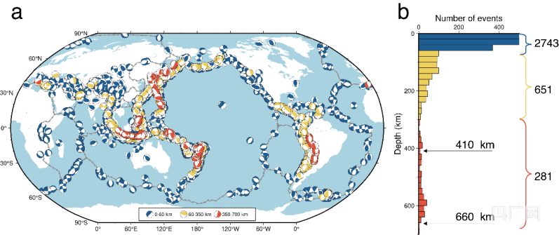 了解深地震的成因和破裂过程有助于更好地理解地震的物理机制、俯冲带的性质以及地球内部的动力过程。长久以来,地震学家通过分析震源时间函数,发现浅地震(0-60 km)、中源地震(60-300 km)和深源地震(300-700 km)具有不同的破裂特征,并根据这些差异推断深地震可能的产生机制。