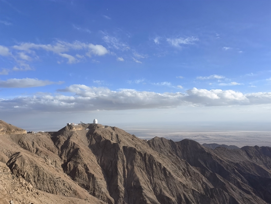 一望无际的大漠戈壁中寸草不生,入眼只有无穷无尽的荒山。高处的山顶上,远远能眺见白色的圆顶。虽然样式简单,但里面的设备,却能将浩瀚璀璨的星空图景置于科学家眼前,得窥宇宙的一隅。