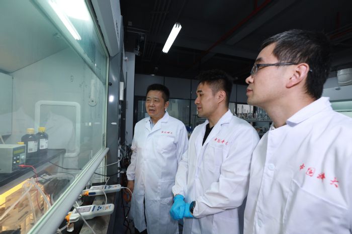 徐铜文与团队成员(左一)在讨论实验进展。代蕊 摄