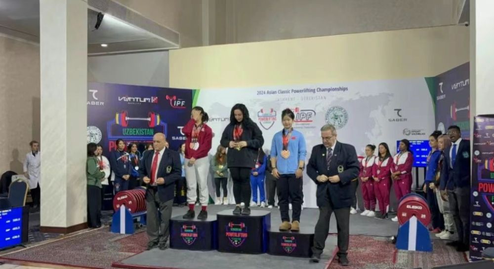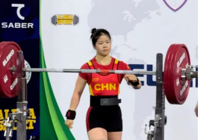 一边在力量举重赛场破全国纪录