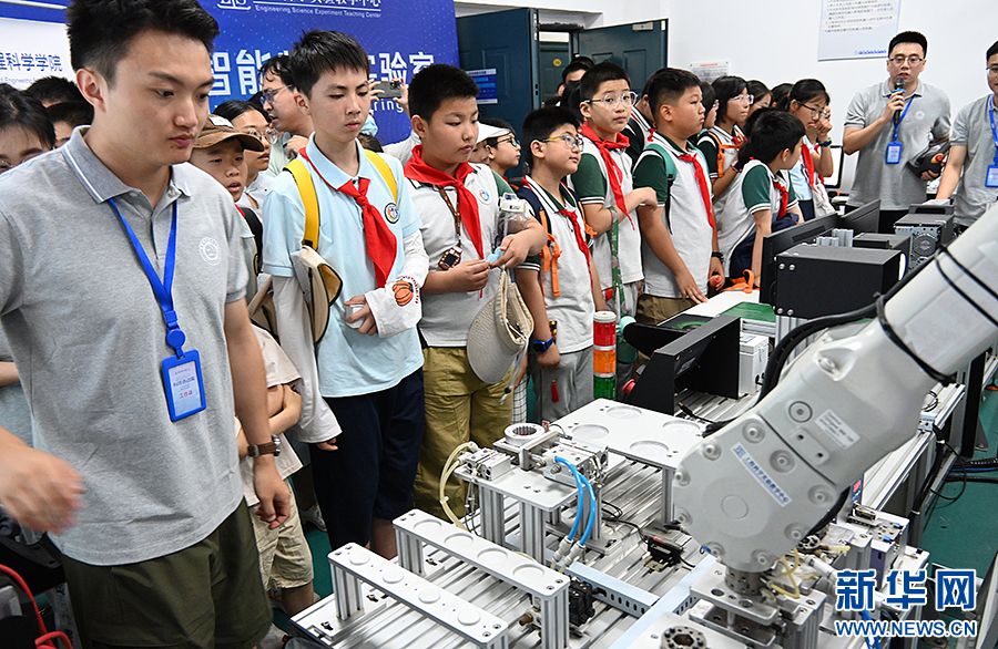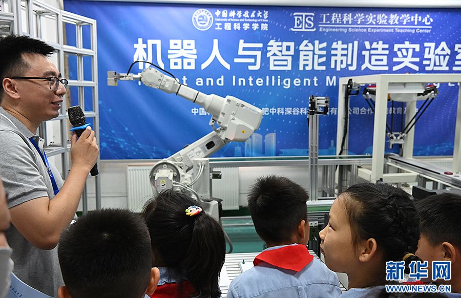 5月17日,工业机器人现场展示吸引了众多学生参观。