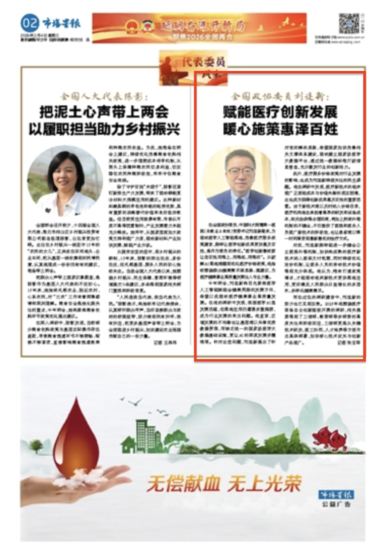【市场星报】全国政协委员刘连新:赋能医疗创新发展 暖心施策惠泽百姓
