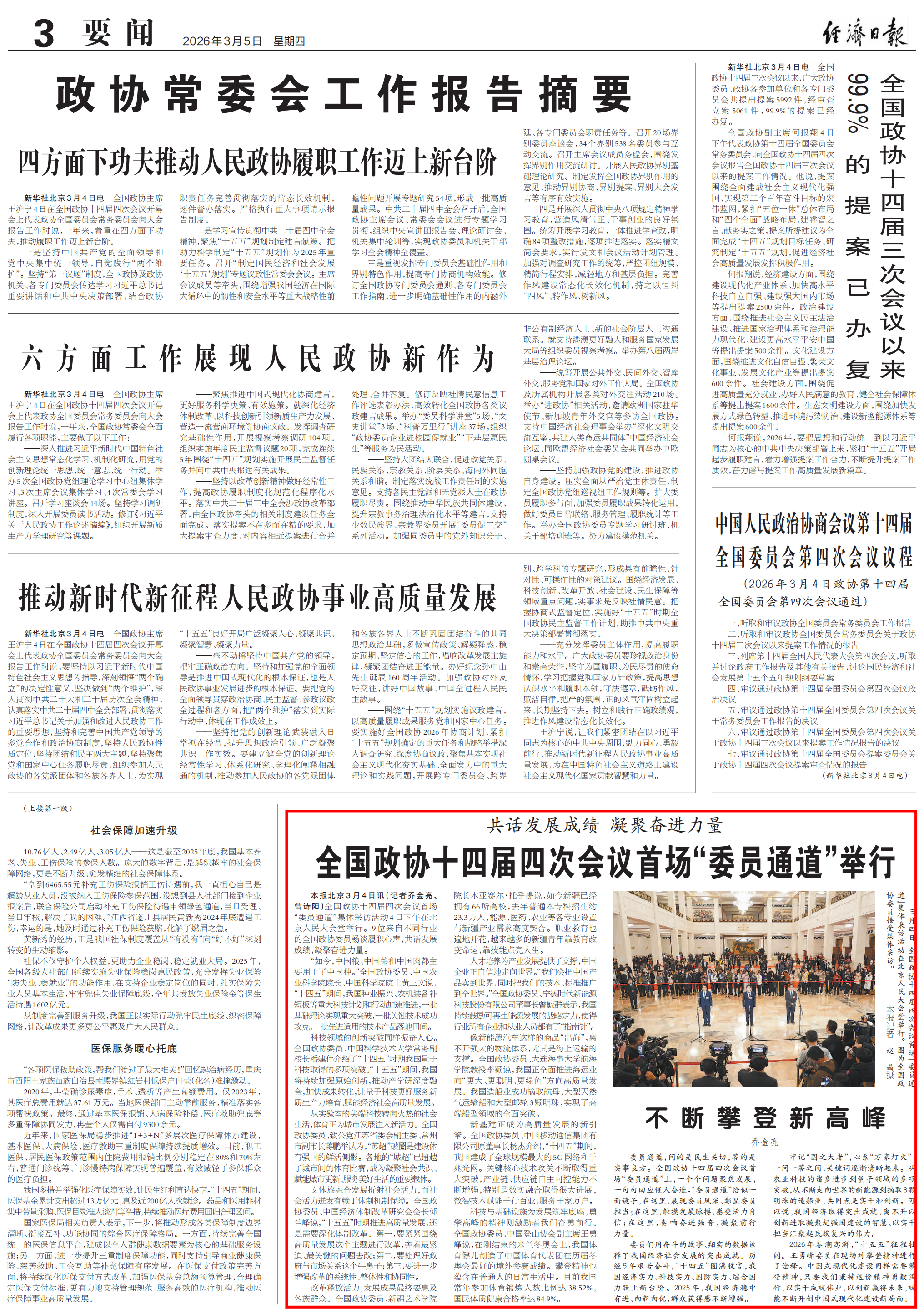 【经济日报】全国政协十四届四次会议首场“委员通道”举行
