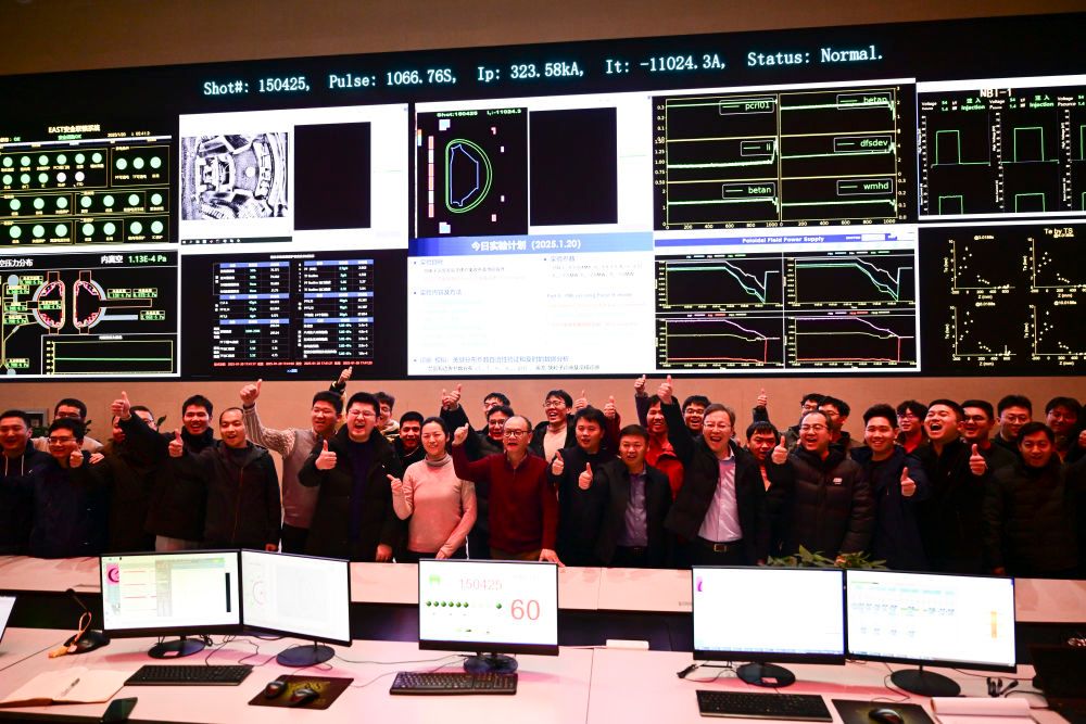 2025年1月20日,EAST物理实验团队在实验成功后庆祝。 新华社记者周牧 摄