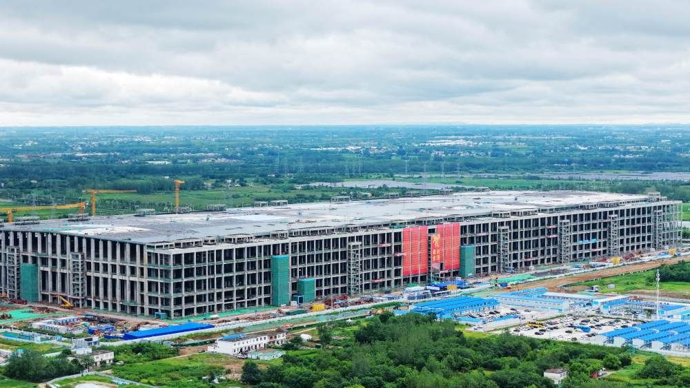 从高处俯瞰总投资550亿元的合肥国显8.6代AMOLED生产线主厂房正在施工。