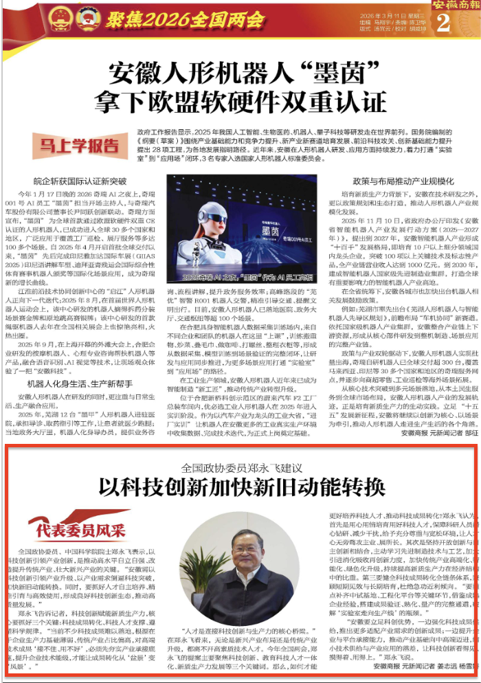 “安徽要立足科创优势,一边强化科技成果供给,推出更多适配产业需求的创新成果;一边提升企业与平台承接能力,推动产业基础向中高端迈进,缩小技术供给与产业应用的落差,让科技创新看得见、摸得着、用得上。”郑永飞说。